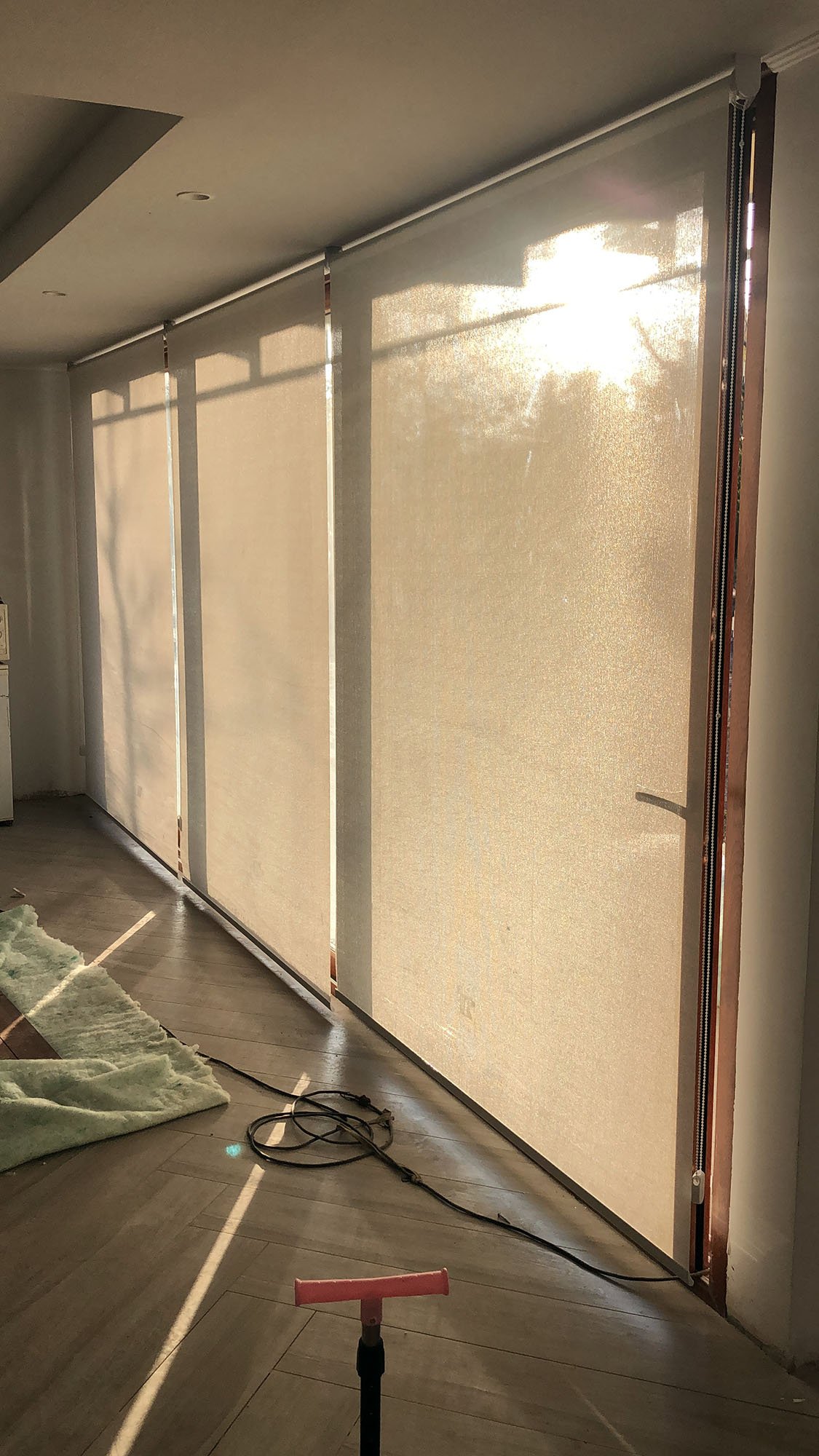 Las cortinas Roller Sunscreen están fabricadas con una combinación de PVC y fibra de vidrio o PVC y poliéster, lo que les otorga resistencia, durabilidad y un control eficiente de la luz. Gracias a su composición y proceso sofisticado